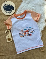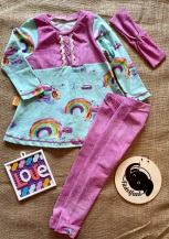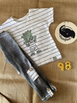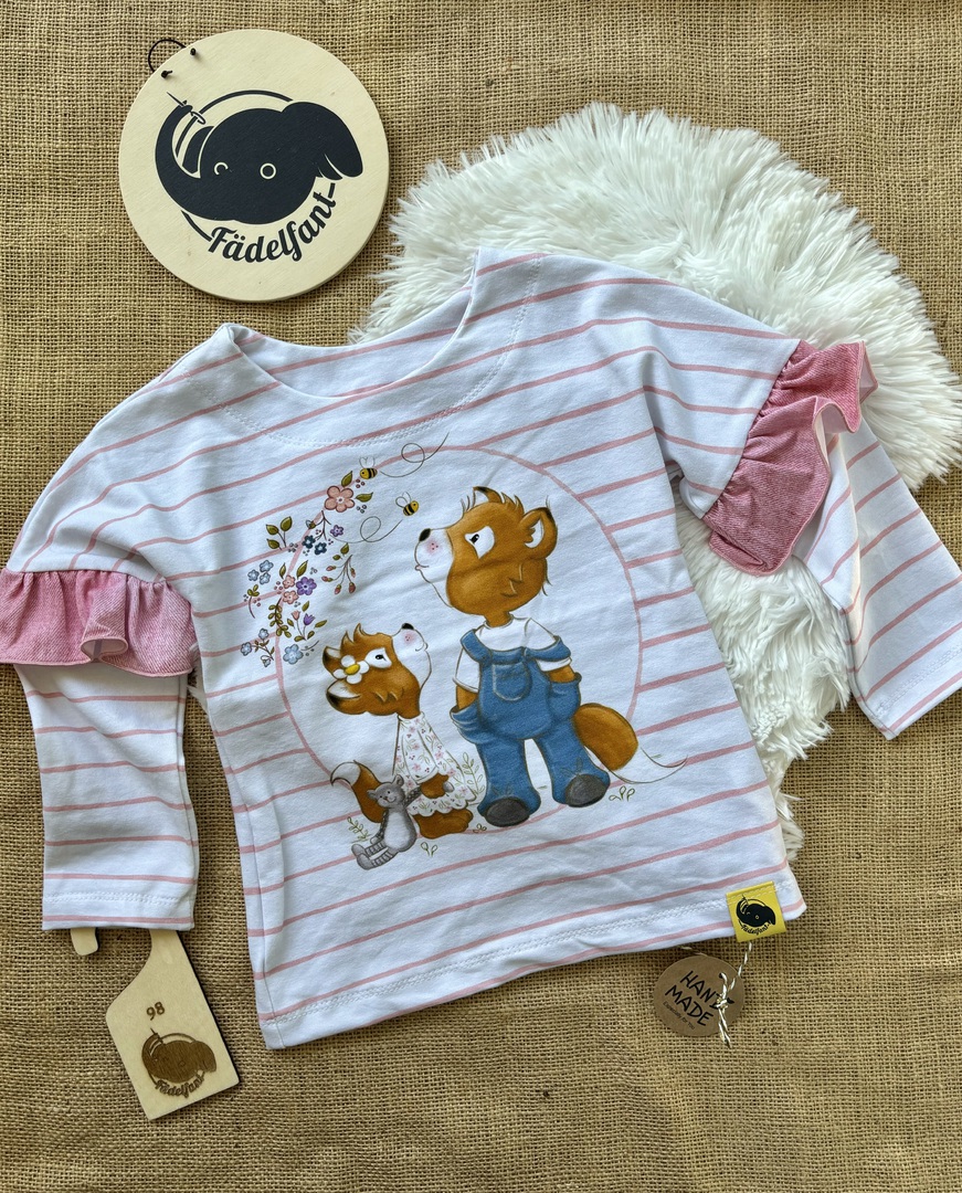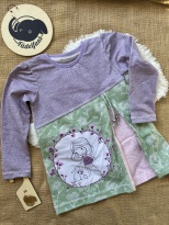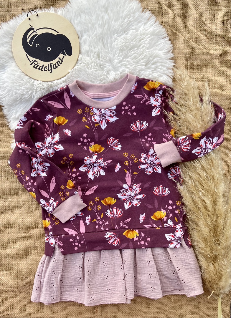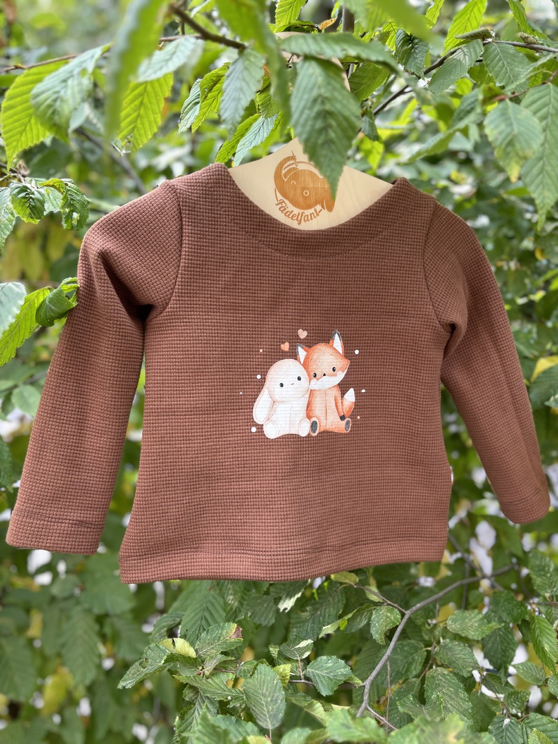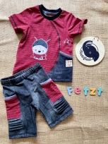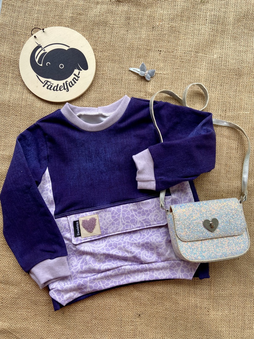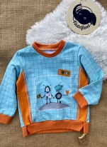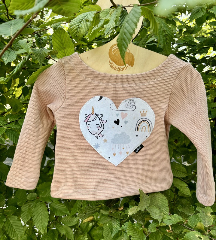 Der Stoff wurde leider falschherum zugeschnitten und deshalb steht das Wort "Zauber" auf dem Kopf, fällt aber kaum auf, da die Schrift sehr klein ist. Pulli ist sonst